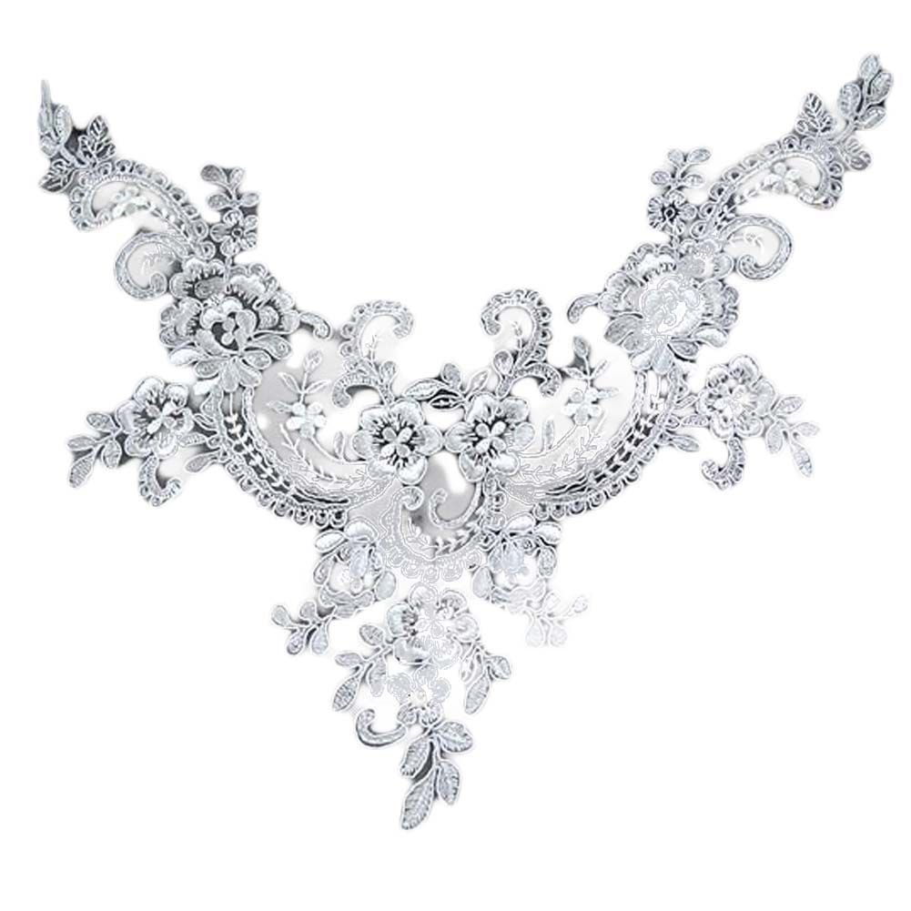 1 Piece DIY White Flower Lace Applique Patches Sewing Embroidered Trim Wedding Dress Patches V-neckline Lace Patch