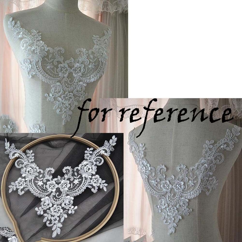1 Piece DIY White Flower Lace Applique Patches Sewing Embroidered Trim Wedding Dress Patches V-neckline Lace Patch 1 Piece DIY White Flower Lace Applique Patches Sewing Embroidered Trim Wedding Dress Patches V-neckline Lace Patch