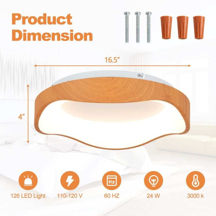 2.Elegant Design: Featuring an imitation wood pattern and a modern simple design, this LED ceiling light not only illuminates your space but also adds a touch of sophistication and style to any indoor decoration.