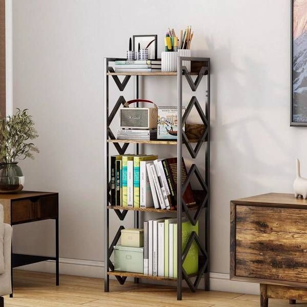 4 Tier Bookshelf For Small Space, Small Metal Bookshelf For Books, Organizers And Storage For Office, Living Room, Bedroom, Rustic Bookshelf, Table 4 Tier Bookshelf For Small Space, Small Metal Bookshelf For Books, Organizers And Storage For Office, Living Room, Bedroom, Rustic Bookshelf, Table 4 Tier Bookshelf For Small Space, Small Metal Bookshelf For Books, Organizers And Storage For Office, Living Room, Bedroom, Rustic Bookshelf, Table