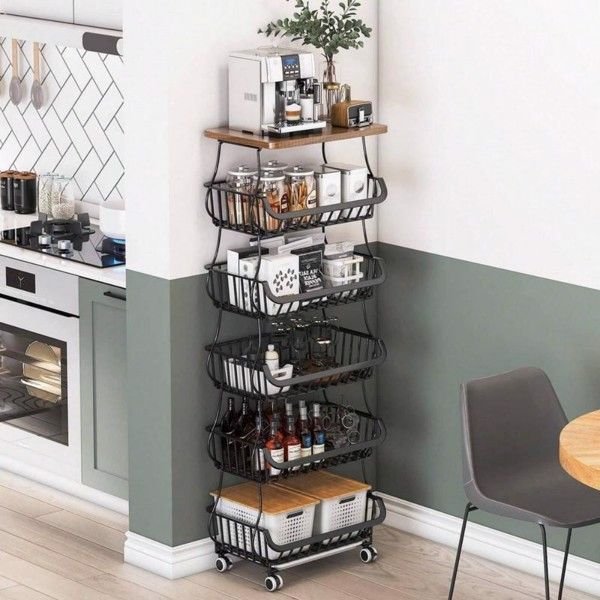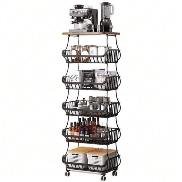This six-layer fruit and vegetable basket cart is like a delicate multi-layer pagoda, with each layer of fruit and vegetable baskets stacked together to form a stable and beautiful overall structure.