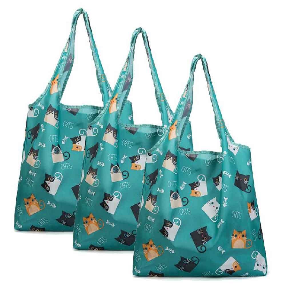 Cat - 3 Pieces Merchandise Tote Bags Reusable Grocery Bags Foldable Boutique Shopping Bags Portable Storage Bag