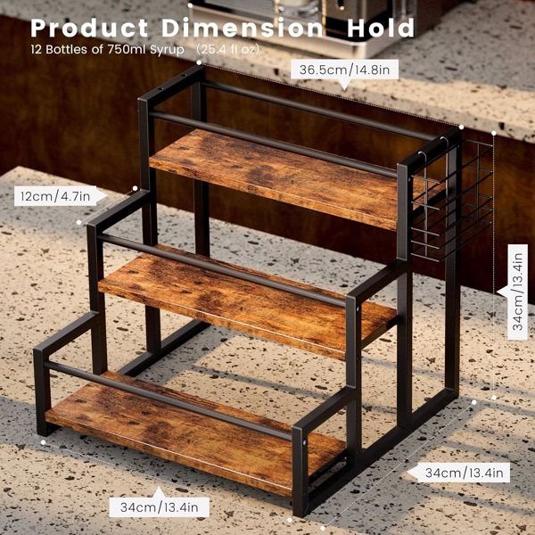 [ Flavor Syrup Organizer ] - The 3-layer syrup rack organizes all flavors of syrup neatly in one place for easy viewing and retrieval when needed. It can hold up to 12 syrup bottles (750 milliliters), sturdy enough to use a syrup pump while the bottles are still on the rack.