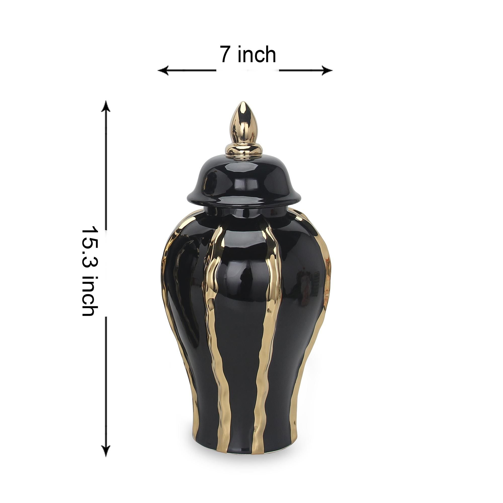 Home > Elegant Black Ceramic Ginger Jar Vase with Gold Accents and Removable Lid - Timeless Home Decor