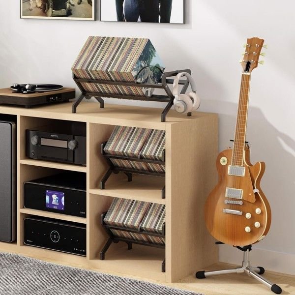 Removable headphone hook - Makes the record holder ideal for placing next to a vinyl record player. Pick up your favorite albums in your music space and immediately pick up your headphones to enjoy your music