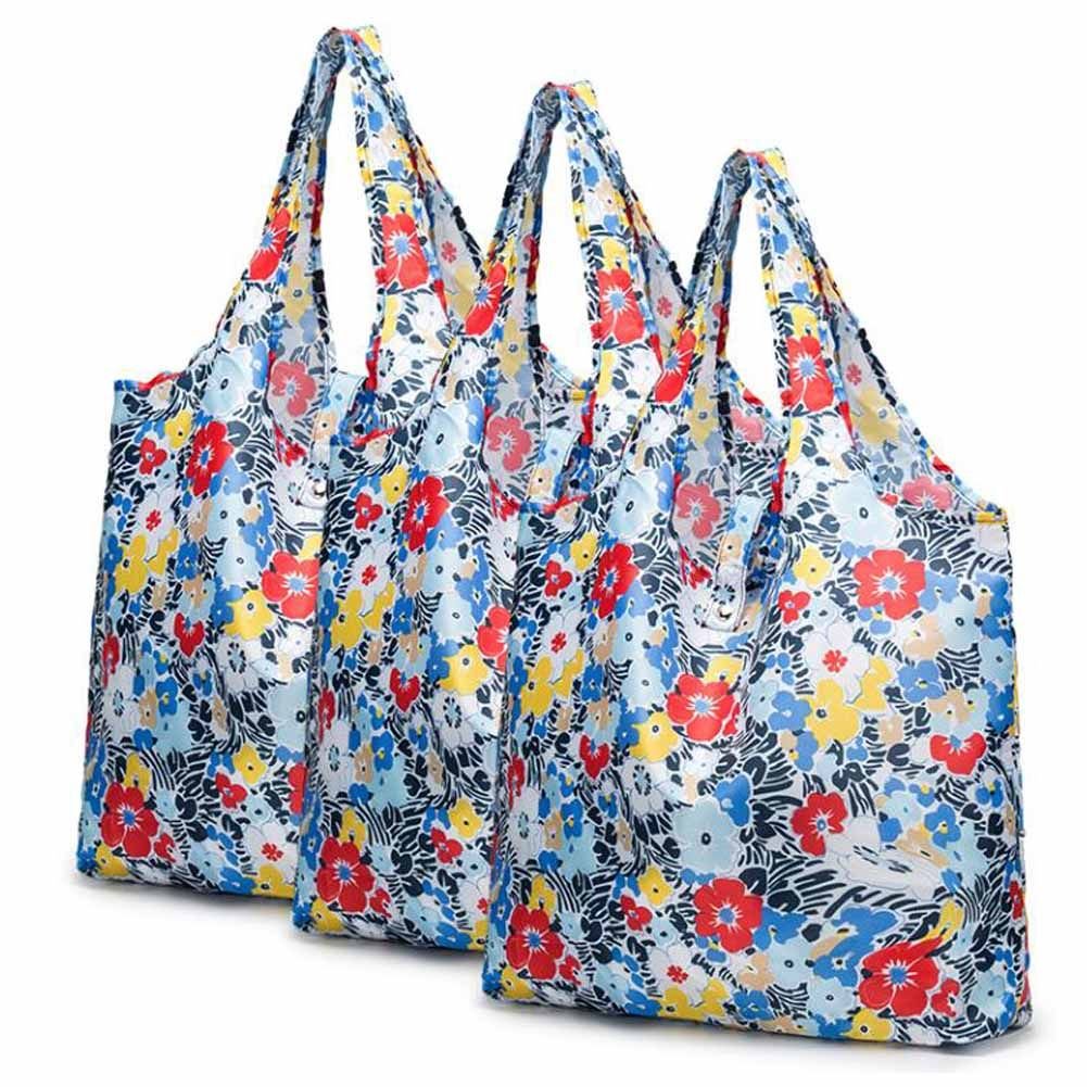 Home > Flower - 3 Pieces Reusable Grocery Bags Foldable Boutique Shopping Bags Portable Merchandise Tote Bags Gift Bags