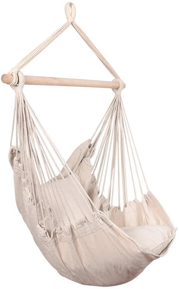 3.Stylish & Widely Used-This hammock chair with cushions is uniquely designed, will be perfect for relaxing with the hammock chair in your patio, yard, garden, deck. You won't feel tired for no matter how long you sit in it. In this way, you can meditate, take a nap in it comfortably.