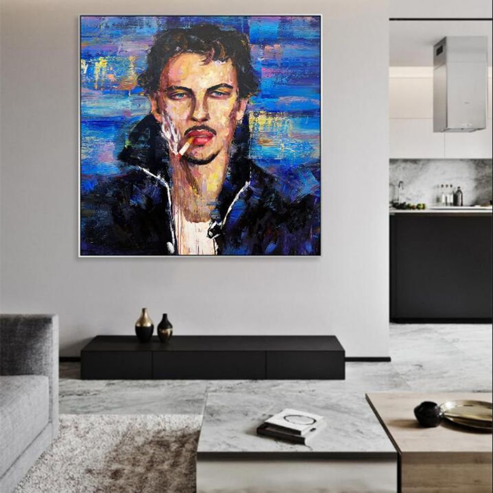 Hand Painted Oil Painting Figurative Art Abstract Paintings On Canvas Human Painting Smoking Men Painting Acrylic Blue and Beige Painting Texture Wall