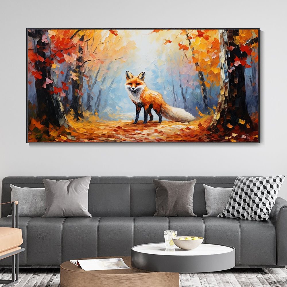 Hand Painted Oil Painting Large Autumn Orange Forest Fox Oil On Canvas Animal Portrait Wall Artwork Golden Fall Nature Home Deco Custom Painting