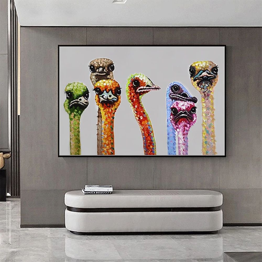 Home > Hand Painted Oil Painting Ostrich Aniamls Oil Painting On Canvas Wall Art Decoration Modern Abstract Picture Living Room Hallway Bedroom Luxurious Dec