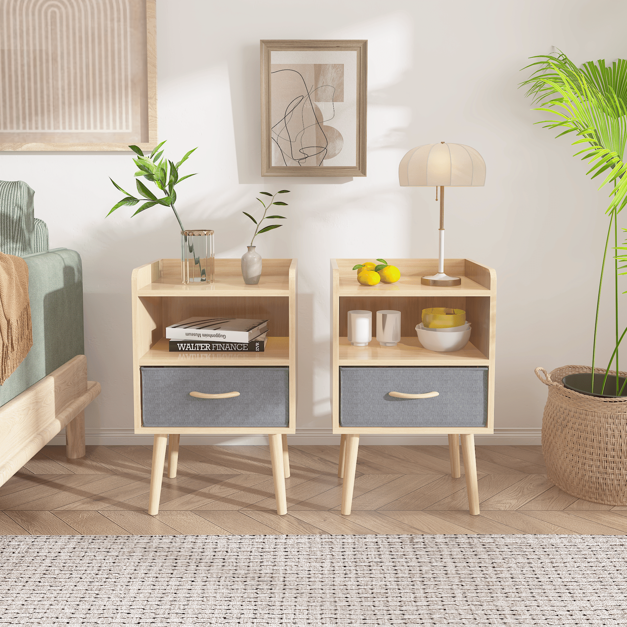 Home > Nightstand With Collapsible Fabric Drawer, 2-Tier Storage End Table, Wood Side Table with Storage Cabinet for Bedroom, Living Room
