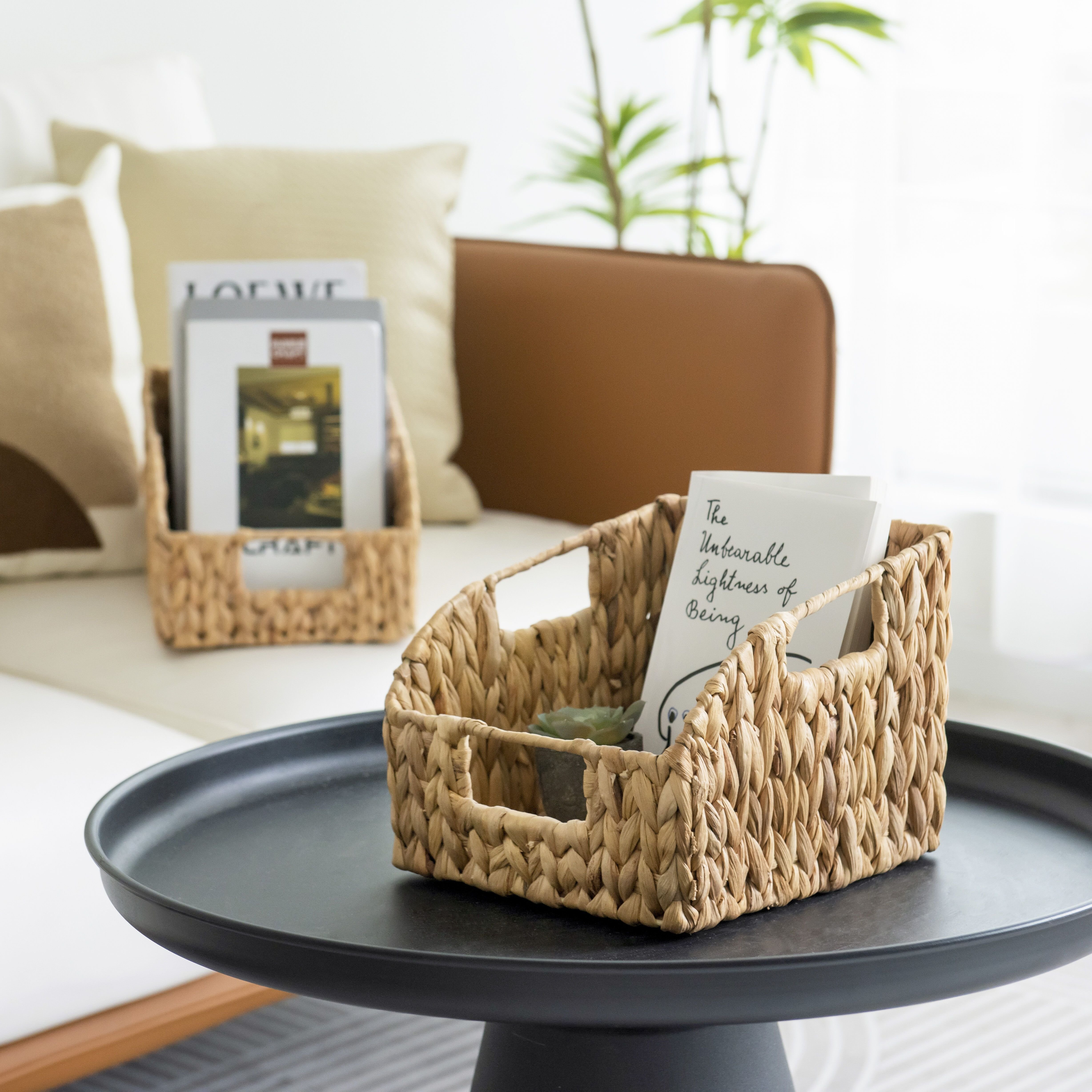 Home > Pantry Baskets for Organizing, Wicker Baskets with Built-in Handles, Handwoven Wicker Storage Baskets, Water Hyacinth for Shelves, 2 Pack