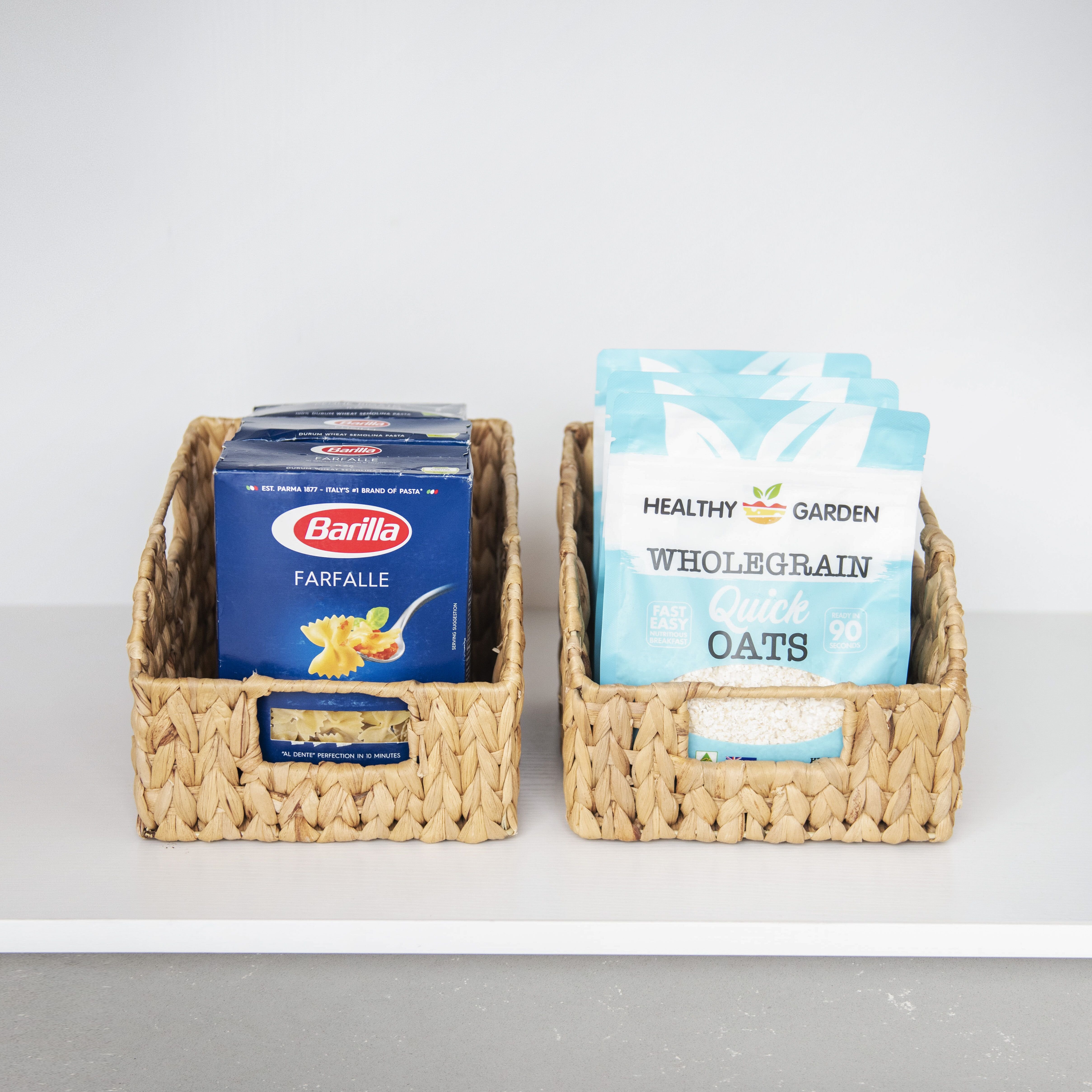 Pantry Baskets for Organizing, Wicker Baskets with Built-in Handles, Handwoven Wicker Storage Baskets, Water Hyacinth for Shelves, 2 Pack