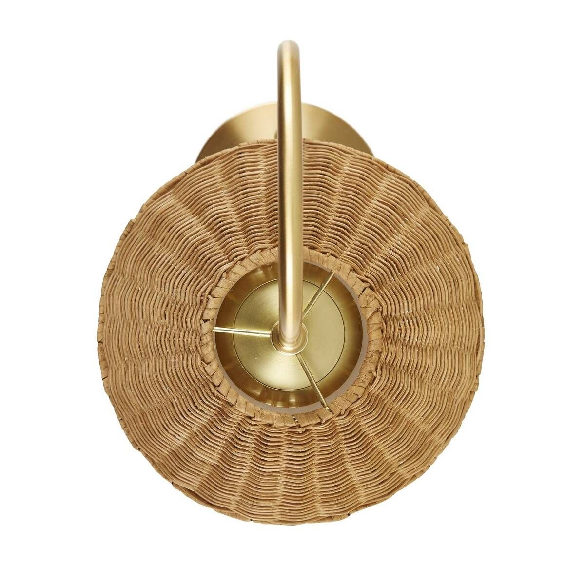 Material: 60% iron, 30% rattan, 10% glassBase Material: 100% ironBase Finish: GoldShade Material: 100% rattan