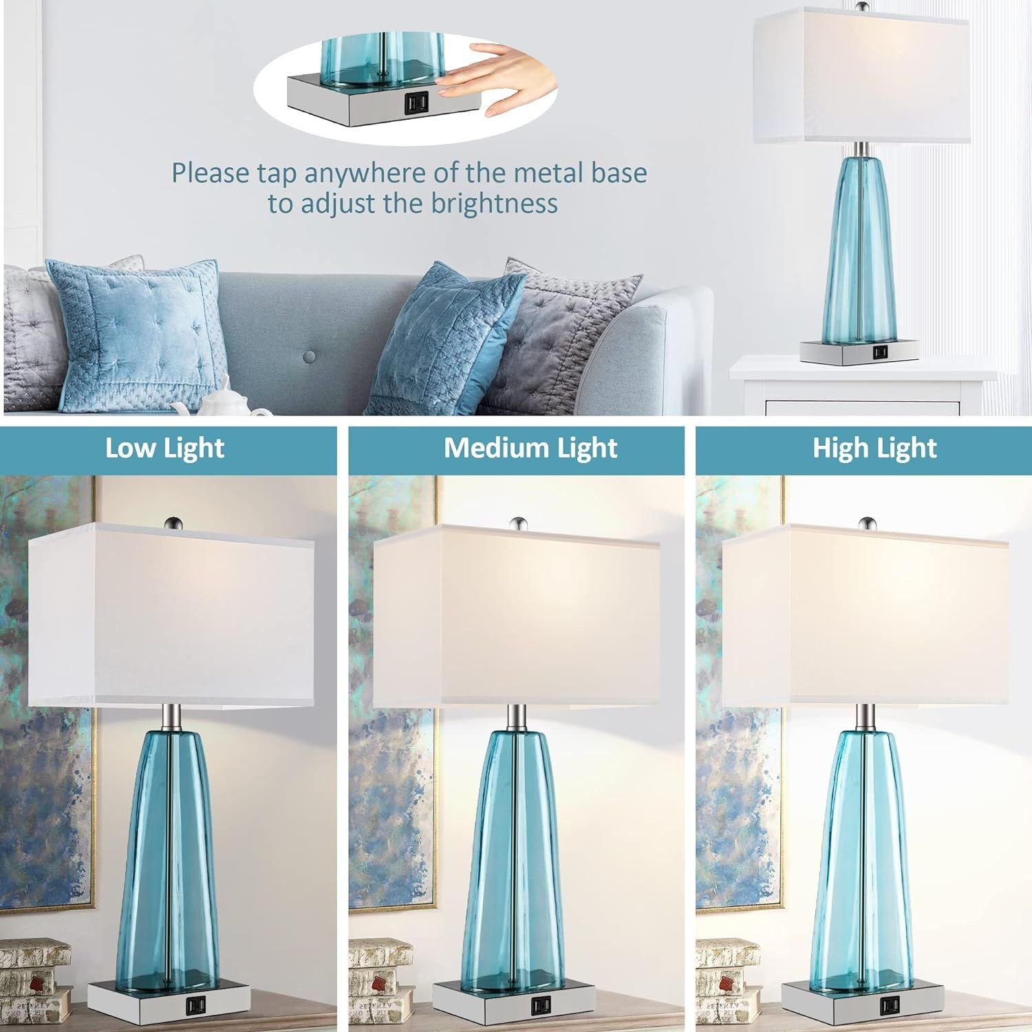3-way dimmable touch control: the bedside lamp offers 3 level brightness options (Low, Medium, High) to meet your different needs. Just tap anywhere of the metal base to adjust the brightness (Please note: Base touch only). Nightlight for a good sleep or nursing. Accent lighting for a warm mood. Proper high comfortable brightness for studying or working. It's very handy to operate.